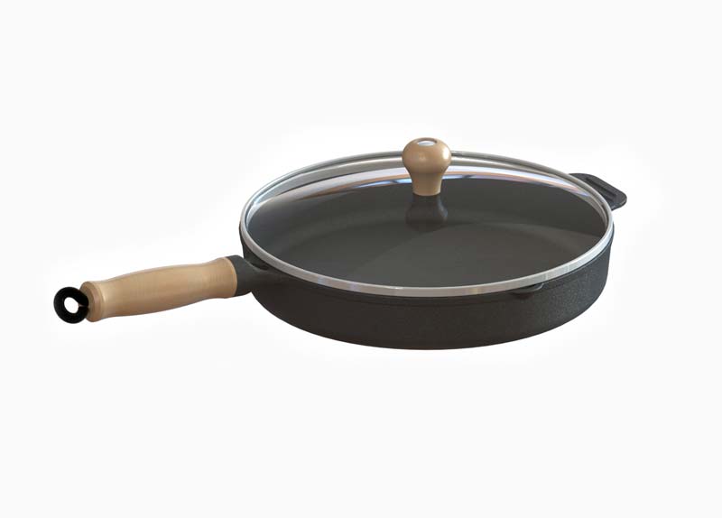 Frigideira Cabo Madeira e Tampa de Vidro e Tampa de Ferro